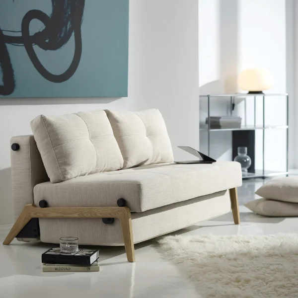 Le gambe in rovere massello laccato conferiscono al divano letto Cubed Wood un caratteristico fascino nordico, con una chiara impronta alla tradizione del design scandinavo.