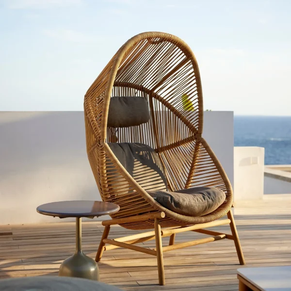 La sedia Hive è progettata dai designer danesi Foersom & Hiort-Lorenzen MDD. Hive si ispira alla forma dell’alveare, offrendo una struttura e un design avvolgenti per avere un rifugio per concentrarsi, riflettere e rilassarsi. Hive è realizzata in Cane-line Weave®, materiale resistente agli agenti atmosferici, con un motivo artistico trasparente in vimini. I comodi cuscini sono dotati di sistema QuickDry & Airflow, che garantisce che questi sia asciutti circa un’ora dopo un acquazzone.